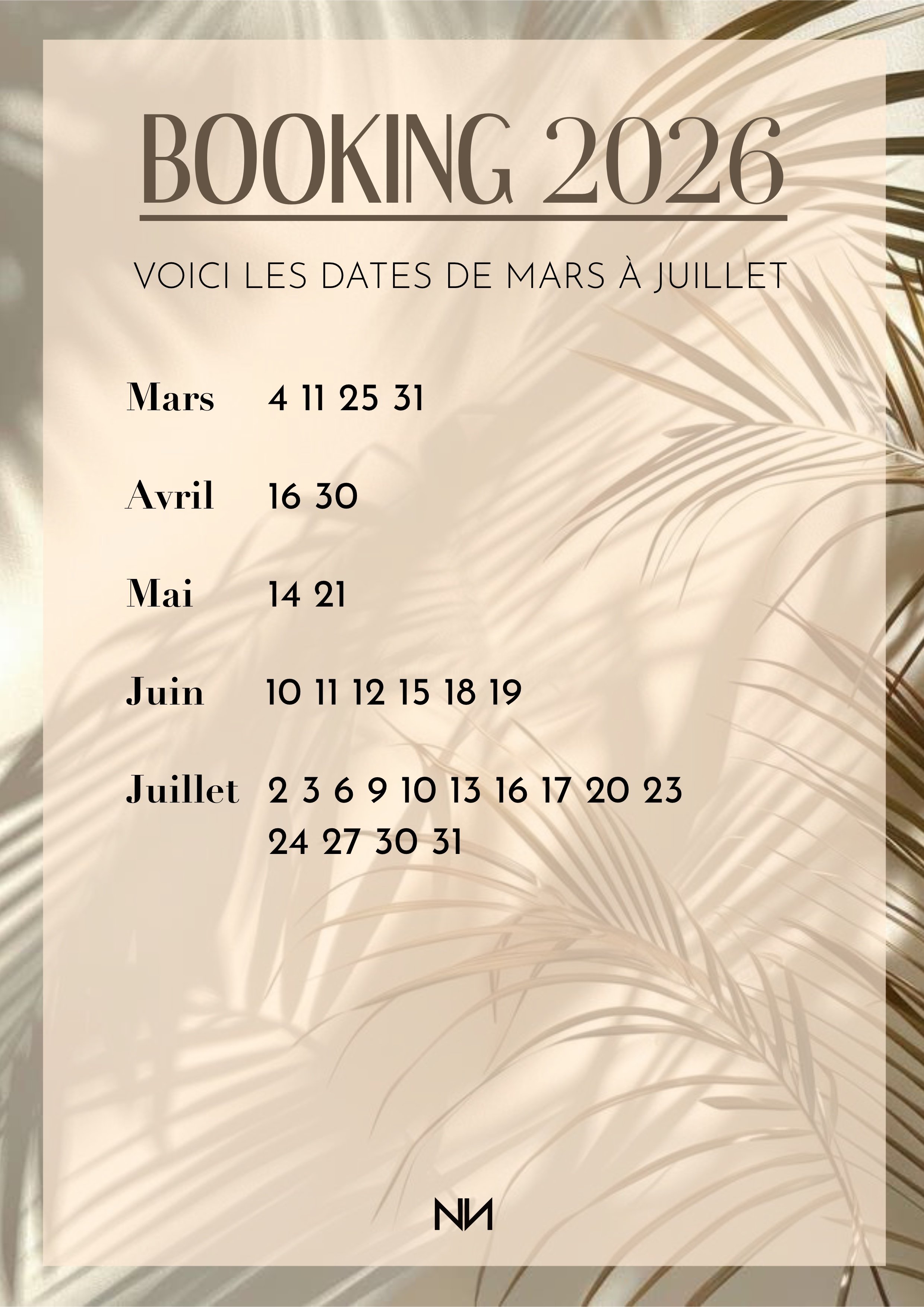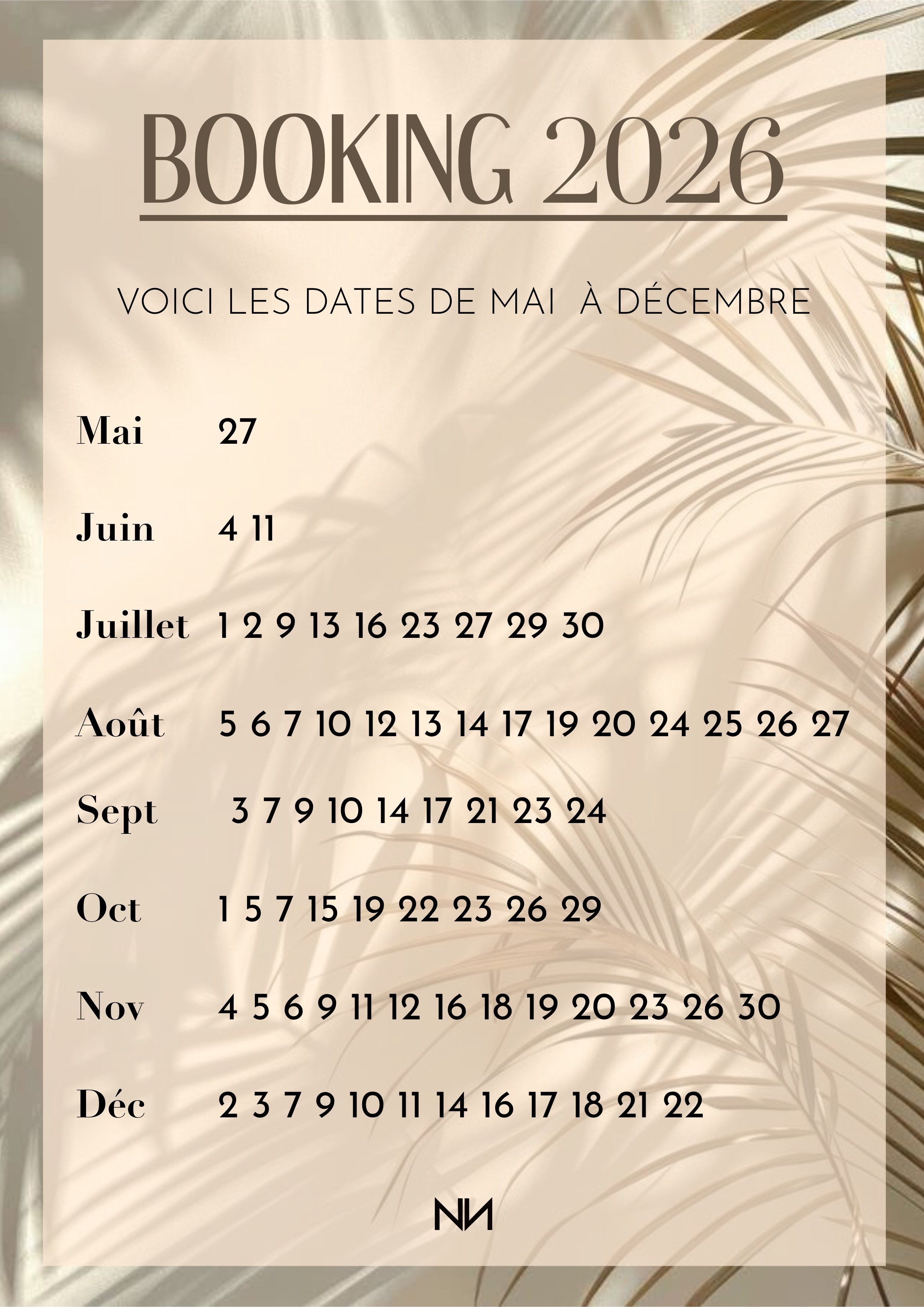 Les dates sont mise à jour chaque soir